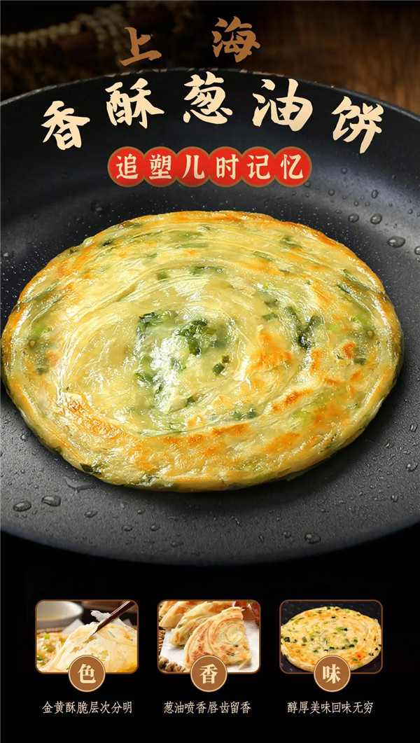 上海香酥葱油饼,香酥可口,早上它是早餐,中午一口馄饨一口饼,营养又健康。下午茶时间,更可搭配各路咖啡饮料,各种搭配统统拿下。美味,不在一饼之间,创意随心配。